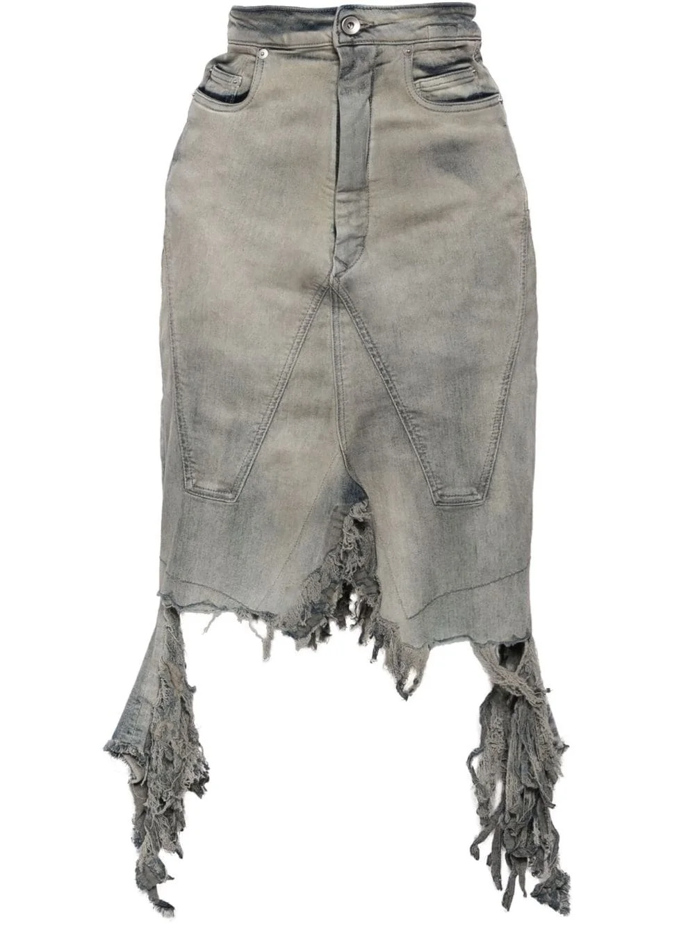 distressed denim skirt Highlights - Blue - Stretch-cotton - Denim - Acid wash - Distressed effect - Frayed hem - High-waisted - Classic five pockets - Front button and zip fastening Made in Italy Composition Cotton 91%, Spandex/Elastane 6%, Rubber 3% SIZE & FIT Model measurements Height 5 ft 9 in(1.76 m) Bust/Chest 29.13 in(74 cm) Hips 33.07 in(84 cm) Waist 22.83 in(58 cm) FittingInformation This midi-length skirt is intended to be worn just below the waist The vented hem offers movement at the rear Constructed from stretch denim, this piece offers a stretch fit with durability This piece fits true to size – take your usual size