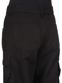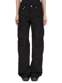 DRKSHDW SS26 TEMPLE DOUBLE CARGO JEANS IN BLACK COTTON CANVAS THESE DOUBLE CARGO JEANS ARE A FULL LENGTH 5-POCKET JEAN WITH A LOW-RISE AND A LOOSE FIT. THEY HAVE A CONCEALED SILVER ZIP FLY, BELT LOOPS AND POCKET RIVETS AND THEY FEATURE TWO BEVELED CARGO POCKETS ON THE THIGH, WITH TWO SQUARE CARGO POCKETS BELOW AND TWO SQUARE BACK POCKETS. THEY ALL HAVE FLAPS AND TOPSTITCHING. THIS MEDIUMWEIGHT COTTON CANVAS IS COMPACT WITH A SOFT HANDFEEL. THIS GARMENT HAS BEEN GARMENT DYED. THIS FABRIC IS MADE USING GOTS CERTIFIED ORGANIC COTTON WHICH MEANS THE NATURAL FIBER IS GROWN WITHOUT HARMFUL CHEMICALS, LEAVING OUR SOIL, AIR AND WATER CLEANER FROM CONTAMINATES. COLOR: BLACK MATERIAL:100% COTTON MODEL IS 181CM TALL MODEL WEARS SIZE 26