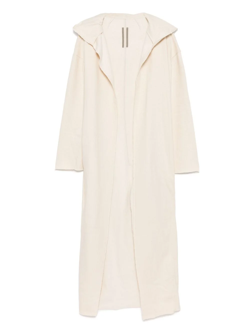 Dragging coat Highlights - Cream white - Open front - Classic hood - Two side slit pockets Made in Italy Composition Organic Cotton 100%