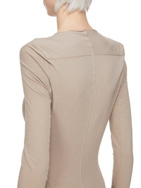 DRKSHDW FW25 CONCORDIANS SIMPLE EDFU GOWN IN DIRTY PEARL MEDIUM WEIGHT COTTON JERSEY THIS SIMPLE EDFU GOWN TRAILS FLOOR LENGTH AND HAS A CLOSE-TO-THE-BODY FIT WITH LONG SLEEVES. IT HAS A HIGH ROUND NECK AND LEVEL SHOULDER SEAM. IT FLARES INTO A FISHTAIL TRAIN WITH A GODET AT CENTRE BACK. THIS MEDIUMWEIGHT COTTON JERSEY HAS A COMPACT AND DRY HANDFEEL. THIS JERSEY IS GARMENT DYED THIS FABRIC IS MADE USING GOTS CERTIFIED ORGANIC COTTON WHICH MEANS THE NATURAL FIBER IS GROWN WITHOUT HARMFUL CHEMICALS, LEAVING OUR SOIL, AIR AND WATER CLEANER FROM CONTAMINATES COLOR: DIRTY PEARL MATERIAL: 100% COTTON MODEL IS 181CM TALL MODEL WEARS SIZE XS