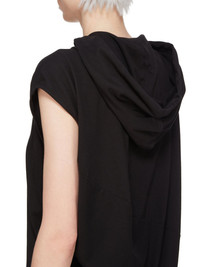 DRKSHDW SS25 HOLLYWOOD EDFU T DRESS IN BLACK MEDIUM WEIGHT COTTON JERSEY THIS EDFU T DRESS IS LONG AND TRAILS FLOOR LENGTH, WITH A SQUARE LOOSE FIT. IT IS SLEEVELESS WITH WIDE SQUARE SHOULDERS AND LEVEL SHOULDER SEAMS. IT HAS A HOOD WITH A DRAWSTRING AND FEATURES A SKIRT THAT SLOPES FROM A SPLIT HIGH ON THE RIGHT THIGH, AND TAPERS INTO A LONG TRAIN THIS MEDIUMWEIGHT COTTON JERSEY HAS A COMPACT AND DRY HANDFEEL. THIS JERSEY IS GARMENT DYED THIS FABRIC IS MADE USING GOTS CERTIFIED ORGANIC COTTON WHICH MEANS THE NATURAL FIBER IS GROWN WITHOUT HARMFUL CHEMICALS, LEAVING OUR SOIL, AIR AND WATER CLEANER FROM CONTAMINATES COLOR: BLACK MATERIAL: 100% COTTON MODEL IS 181CM TALL MODEL WEARS SIZE S