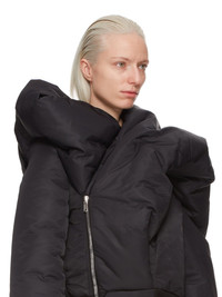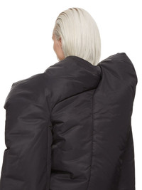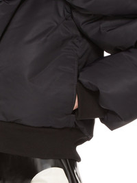 DRKSHDW FW23 LUXOR DOLL BOMBER IN BLACK AND PALE GREEN RECYCLED BOMBER THIS DOLL BOMBER IS ABOVE HIP LENGTH IN HEAVYWEIGHT DUVET. IT HAS AN OFF CENTRE ZIPPER AND CONCEALED SNAP AT NECK, AND FEATURES A DRAPED FRONT WHICH EXTENDS OVER THE SHOULDERS AND INTO THE BACK ON THE RIGHT SIDE, AND INTO THE ARM ON THE LEFT SIDE. IT HAS LONG SLEEVES AND A RIBBED WAISTBAND AND CUFFS.IT IS FULLY LINED, WITH CONTRAST LINING, AND HAS TWO INTERNAL SNAP POCKETS THIS MEDIUMWEIGHT BOMBER FABRIC HAS A SHINY SATIN SURFACE AND A CRISP TECHNICAL HAND FEEL. IT IS DYED USING A SPECIALIZED TECHNIQUE THAT ALLOWS ECOLOGICAL NATURAL PIGMENTS TO BE USED ON SYNTHETIC FIBERS. THIS FABRIC IS MADE USING GRS CERTIFIED RECYCLED NYLON WHICH ENSURES A REDUCTION IN WATER CONSUMPTION, EMISSIONS AND HAZARDOUS WASTE, LESSENING THE DEPENDENCE ON NON-RENEWABLE RESOURCES - COLOR: BLACK/PALE GREEN - MATERIAL: 100% NYLON - KNIT RIB CUFF+ BOTTOM 100% COTTON - SLEEVES LINING 100% NYLON - POCKETS LINING 100% COTTON - PADDING 90% POLYESTER + + 10% ACRYLIC - MODEL IS WEARING SIZE S - MODEL IS 181 CM TALL