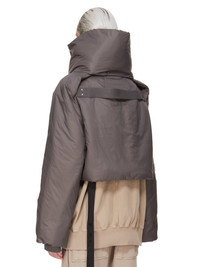 DRKSHDW FW25 CONCORDIANS COVERTIBLE JKT IN BRONZE RECYCLED NYLON THIS CONVERTIBLE JKT CROPPED IS WAIST LENGTH WITH LONG SLEEVES. IT HAS A CENTER FRONT ZIPPER WITH TOP SNAP AND SHOULDER SNAPS, ENABLING THE SHOULDERS TO BE WORN FOLDED DOWN. IT FEATURES A REMOVABLE, HIGH FUNNEL COLLAR WITH SNAP FASTENINGS ON NECK. WHEN REMOVED IT REVEALS A RIBBED COLLAR AND VISIBLE SNAPS. IT HAS A COTTON WEBBING STRAP WITH RIVET DETAIL ON THE BACK YOKE. IT IS FULLY LINED AND HAS INTERNAL SNAP POCKETS. THIS AIRY AND LIGHTWEIGHT NYLON IS MADE USING GRS CERTIFIED RECYCLED NYLON WHICH ENSURES A REDUCTION IN WATER CONSUMPTION, EMISSIONS AND HAZARDOUS WASTE, LESSENING THE DEPENDENCE ON NON-RENEWABLE RESOURCES COLOR: BRONZE MATERIAL: 100% NYLON MODEL IS 181CM TALL MODEL WEARS SIZE S
