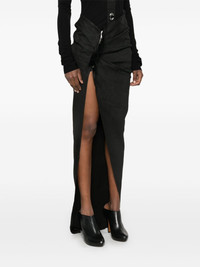 EDFU maxi skirt Highlights - Black - Wax coated - Side zip fastening - Pleat detailing - Fringe detailing - Asymmetric hem - Long length Made in Italy Composition Cotton 91%, Elastomultiester 6%, Rubber 3% SIZE & FIT Model measurements Height 5 ft 11 in(1.8 m) Bust/Chest 31.49 in(80 cm) Hips 36.61 in(93 cm) Waist 24.4 in(62 cm) FittingInformation Designed with an asymmetric hem, this skirt is intended to be worn high on the waist Made from a midweight stretch fabric, this piece offers elasticity and flexibility when worn
