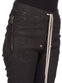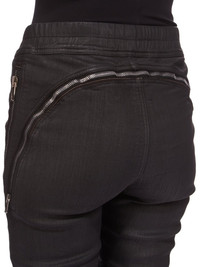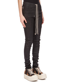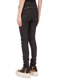 DRKSHDW FW24 PORTERVILLE GARY LEGGING IN BLACK WAX BLACK WAX STRETCH DENIM THESE GARY LEGGINGS ARE FULL-LENGTH WITH A SKIN TIGHT FIT. THEY HAVE A DRAWSTRING WAISTBAND WITH A BELA EXPOSED CENTRE ZIPPER WITH TWO SNAP DETAIL AT BOTTOM, A ZIPPER ACROSS THE REAR AND SIDE FRONT ZIPPERED POCKETS. THEY FEATURE ZIPPER OPENINGS ON THE FRONT SHINSTHE STYLE WAS INSPIRED BY OUTFITS WORN BY GARY NUMAN THIS LIGHTWEIGHT STRETCH DENIM IS OVERDYED AND THEN SPRAYED WITH A SOFT BLACK WAX FINISH THIS GARMENT IS TREATED IN AN ITALIAN WASH HOUSE BASED IN THE VENETO AREA OF ITALY, THAT PRODUCES IN SMALLER TREATMENT BATHS TO REDUCE WATER WASTE AND UTILIZE A WATER PURIFYING PROCESS THAT ENABLES THEM TO RECYCLE A PORTION OF THE WATER USED. ALL OF OUR DENIM WASHES ARE ZDHC CERTIFIED - COLOR: BLACK WAX - MATERIAL: 91% COTTON + 6% ELASTOMULTIESTER + 3% RUBBER - POCKETS LINING 100% COTTON - MODEL IS 181CM TALL - MODEL WEARS SIZE S