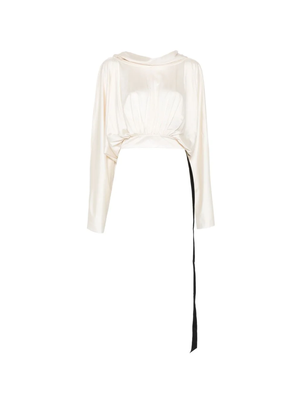 gathered-detail hoodie Highlights - Cream - Drawstring detail - Hooded - Long sleeves Made in Italy Composition Acetate 80%, Polyamide 20% Washing instructions Dry Clean Only