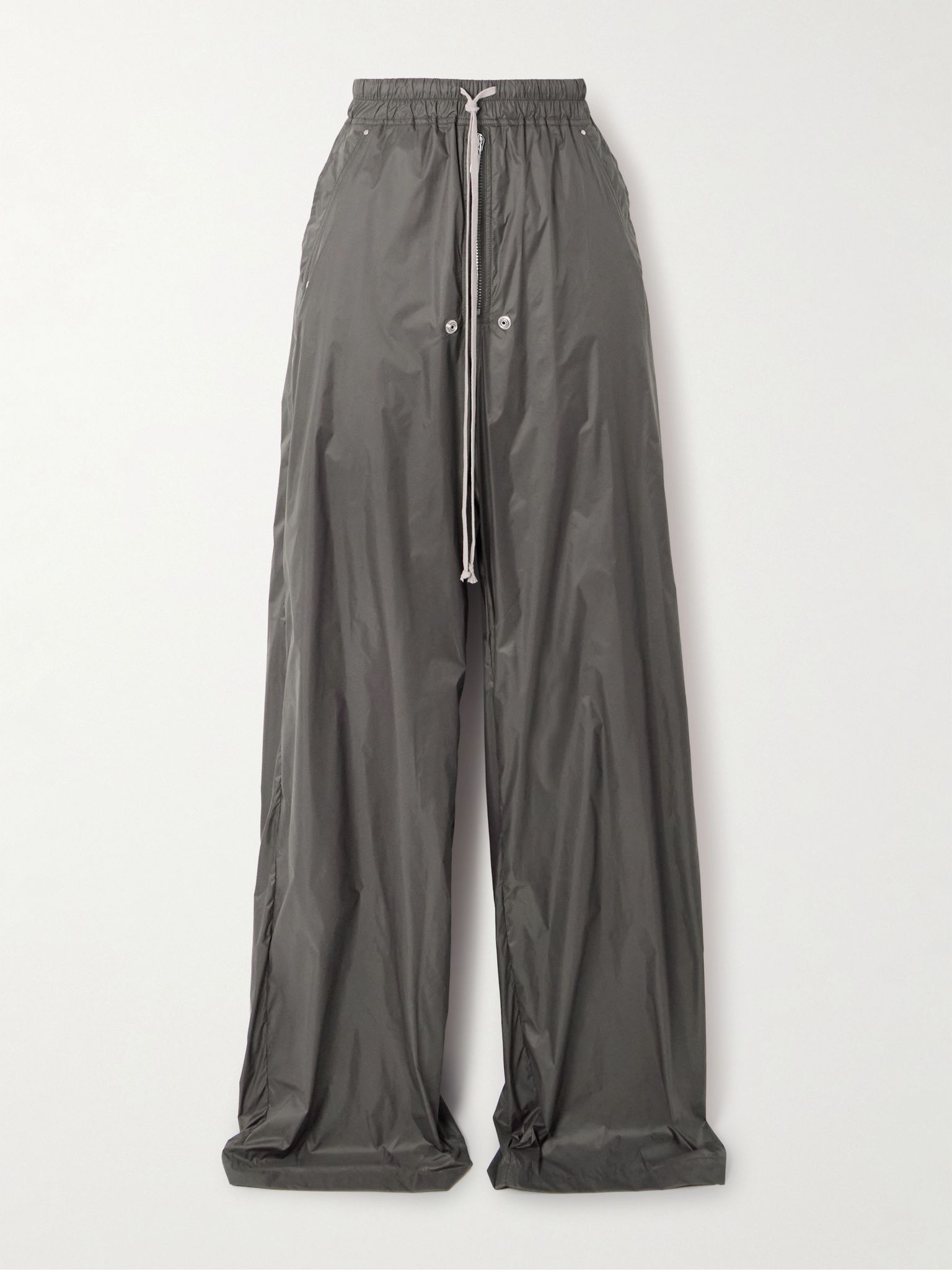 Rick Owens is renowned for imbuing each collection with subversive cool, re-imagining wardrobe classics through his avant-garde lens. These 'Geth Belas' pants are made from shell in a dramatic wide-leg shape and have silver-tone rivets and an exposed zip. The comfortable drawstring waistband is threaded with signature extra long ties. Size & Fit - Fits true to size, take your normal size - High-rise, cut for a wide-leg fit - Particularly long in length - Drawstring waist designed for a flexible fit - Lightweight, non-stretchy fabric - Model is 177cm/ 5'10" and is wearing a size Small Model measurements: - Bust: 80cm/ 31.5" - Waist: 60cm/ 23.6" - Hip: 80cm/ 31.5" Details & Care - Taupe shell - Pull on - 100% nylon - Dry clean