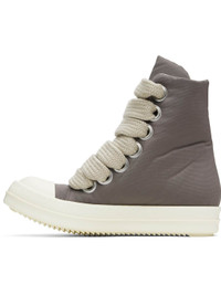 High-top padded nylon- and cotton-blend faille sneakers in gray. · Faux-leather cap toe · Lace-up closure · Cotton twill lining · Treaded rubber sole Supplier color: Dust/Milk/Milk Upper: textile. Sole: rubber. Made in Italy 251126F127033