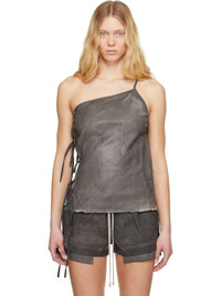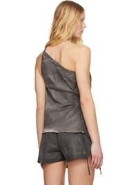 Overdyed and foil-coated stretch denim top. Fading throughout. · Single-shoulder construction · Frayed edge at hem · Self-tie fastenings at side seam · Fixed spaghetti strap Each item is unique. Please note that coloration and finishing may vary. Supplier color: Dark dust 90% cotton, 7% polyester, 3% rubber. Made in Italy 251126F111023