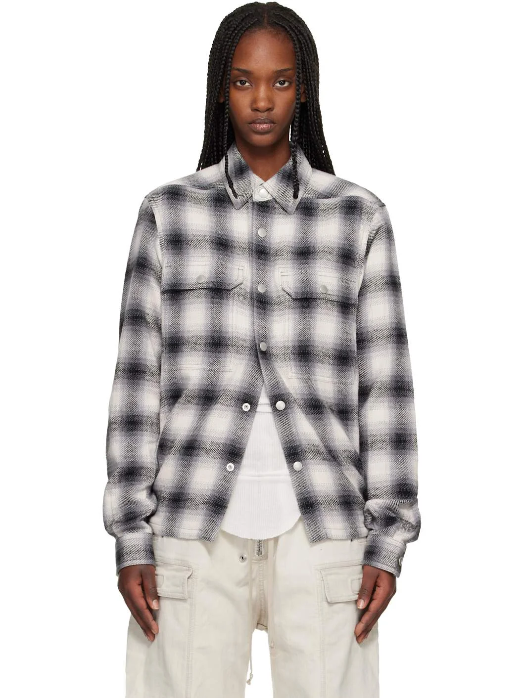 Cotton flannel overshirt. · Check pattern throughout · Spread collar · Press-stud closure · Flap pockets at chest · Cropped hem · Press-stud barrel cuffs Supplier color: Grey plaid 100% cotton. Made in Japan 261126F109000