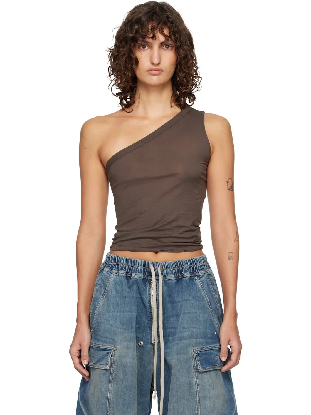 Semi-sheer GOTS-certified organic cotton jersey top. · Single-shoulder construction · Rib-knit asymmetric neck · Central seam at back · Integrated logo-woven strap at interior side seam Supplier color: Dark dust 100% cotton. Made in Italy 261126F111005