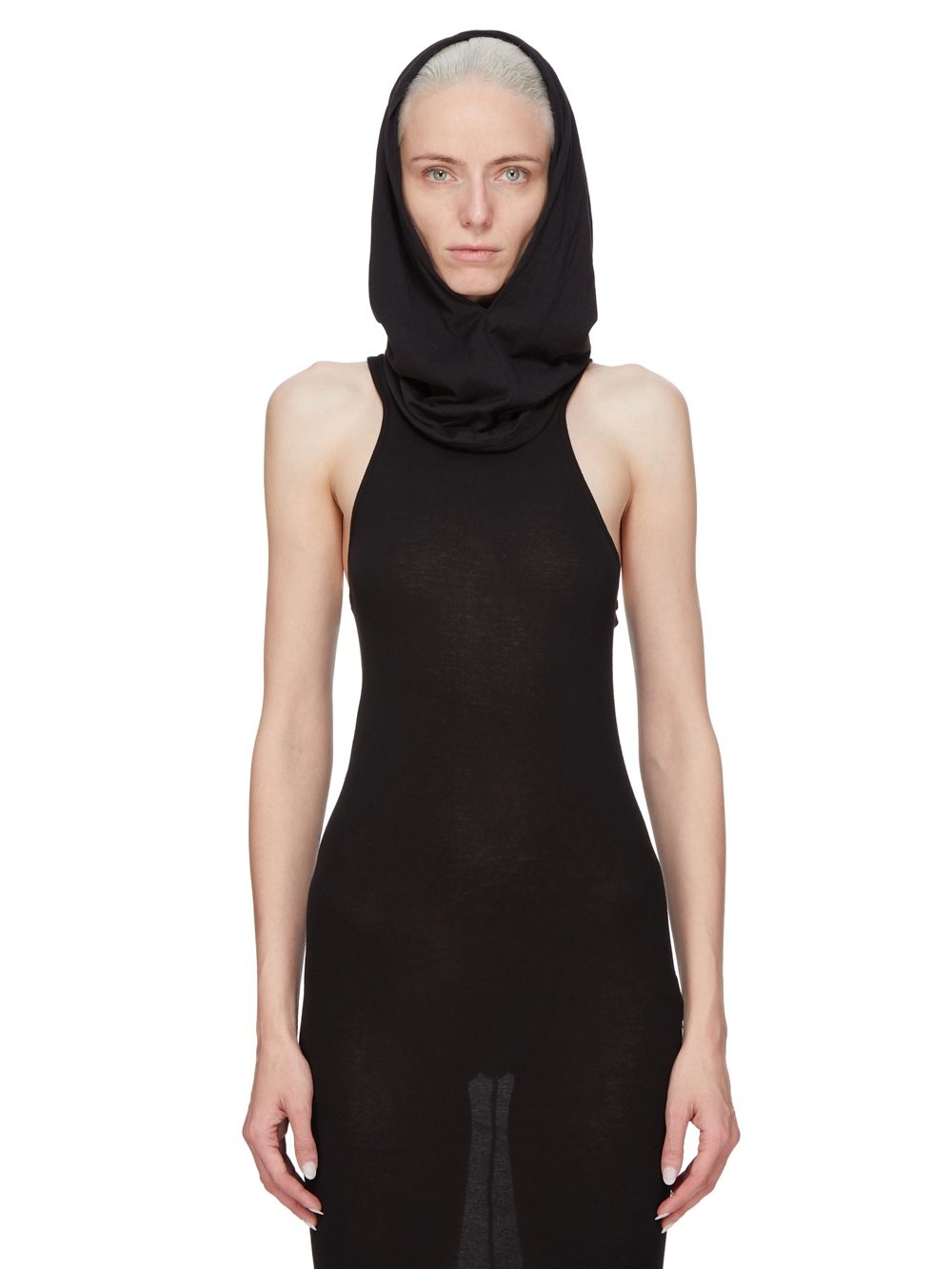 DRKSHDW SS25 HOLLYWOOD GRACE HOOD IN BLACK COTTON GAUZE JERSEY THIS GRACE HOOD FITS LOOSELY OVER THE HEAD, WITH A WIDE OVAL THAT FRAMES THE FACE AND FALLS TO COVER THE NECK THIS LIGHTWEIGHT AND AIRY COTTON GAUZE JERSEY IS SEMI TRANSPARENT AND HAVE A SOFT WASHED HANDFEEL. THIS JERSEY IS GARMENT DYED THIS FABRIC IS MADE USING GOTS CERTIFIED ORGANIC COTTON WHICH MEANS THE NATURAL FIBER IS GROWN WITHOUT HARMFUL CHEMICALS, LEAVING OUR SOIL, AIR AND WATER CLEANER FROM CONTAMINATES COLOR: BLACK MATERIAL: 100% COTTON MODEL IS 181CM TALL MODEL WEARS SIZE S