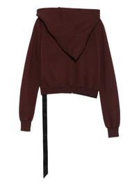 zip-up hoodie Highlights - Burgundy - Asymmetric zip fastening - Kangaroo pocket - Drawstring hood - Long sleeves - Black tie belt Made in Italy Composition Cotton 100% Washing instructions Read Manufacturer Guidelines