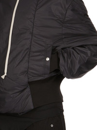 DRKSHDW FW25 CONCORDIANS CROPPED ALICE PARKA IN BLACK RECYCLED NYLON THIS CROPPED ALICE PARKA IS ABOVE HIP-LENGTH WITH LONG SLEEVES. IT HAS A CENTRE ZIPPER CLOSURE THAT IS COVERED BY A DOUBLE BREASTED THICK FLAP THAT SECURES WITH CONCEALED SNAPS. WORN CLOSED IT CREATES A HIGH FUNNEL NECK. IT HAS A LARGE HOOD WITH DRAWSTRING WHICH IS EDGED WITH LINES OF SIGNATURE STITCHING AND HAS A CENTRE ZIPPER THAT CAN BE WORN OPEN TO CREATE A LARGE COLLAR OVER THE SHOULDERS. IT HAS SIGNATURE LEVEL SHOULDER SEAMS, TWO SIDE WELT POCKETS WITH SNAPS, RIBBED CUFFS AND WIDE WAISTBAND.IT IS FULLY LINED AND HAS TWO INSIDE POCKETS WITH SNAPS. THIS AIRY AND LIGHTWEIGHT NYLON IS MADE USING GRS CERTIFIED RECYCLED NYLON WHICH ENSURES A REDUCTION IN WATER CONSUMPTION, EMISSIONS AND HAZARDOUS WASTE, LESSENING THE DEPENDENCE ON NON-RENEWABLE RESOURCES COLOR: BLACK MATERIAL: 100% NYLON MODEL IS 181CM TALL MODEL WEARS SIZE S