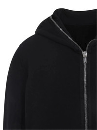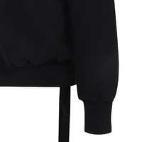 The Jumbo GIMP Hoodie in Black by DRKSHDW from Rick Owens is a bold reinterpretation of streetwear staples crafted from soft, black cotton fleece. It features a signature wrap-around zip closure that extends across the front and over the hood, creating a dramatic architectural silhouette. Dropped shoulders and long sleeves accentuate the oversized fit while ribbed cuffs and a hem provide structure. Front pockets add functionality, and an elongated drawstring at the waist provides a distinctive Rick Owens touch. This hoodie captures the designer's signature blend of utilitarianism, subversion, and avant-garde style. Material: 99% Cotton 1% Elastane Color: Black Made in Italy Sku: DU02E7283FSL/09