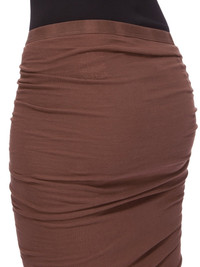 DRKSHDW FW24 PORTERVILLE SOFT EDFU SKIRT LONG IN TERRA MEDIUM WEIGHT COTTON JERSEY THIS SOFT EDFU SKIRT LONG IS FLOOR LENGTH. IT IS A TRIANGULAR WRAP AROUND SHAPE. IT IS A TRIANGULAR WRAP AROUND SHAPE, WITH AN ELASTICIZED WAISTBAND, SLOPING FROM GATHERED DRAPING THAT CREATES A SHORT WINGED RUFFLE ON THE RIGHT HIP, WHERE IT STARTS WITH A HIGH SPLIT, SLOPING TO A TAPERED HEM THIS MEDIUMWEIGHT COTTON JERSEY HAS A COMPACT AND DRY HANDFEEL. THIS JERSEY IS GARMENT DYED THIS FABRIC IS MADE USING GOTS CERTIFIED ORGANIC COTTON WHICH MEANS THE NATURAL FIBER IS GROWN WITHOUT HARMFUL CHEMICALS, LEAVING OUR SOIL, AIR AND WATER CLEANER FROM CONTAMINATES - COLOR: TERRA - MATERIAL: 100% COTTON - MODEL IS 181CM TALL - MODEL WEARS SIZE S
