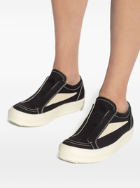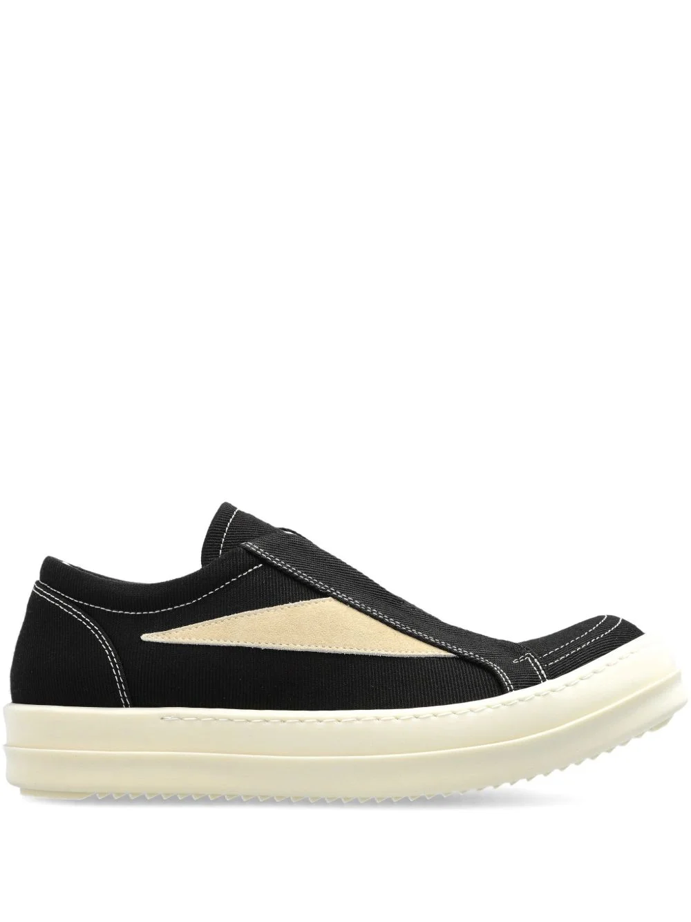 panelled slip-on sneakers Highlights - Black - Cotton upper - Off-white panel - Slip-on style - Flat sole - Topstitching detail Made in Italy Composition Outer: Cotton 100% Sole: Rubber 100% Lining: Fabric 100%
