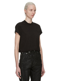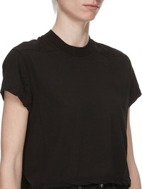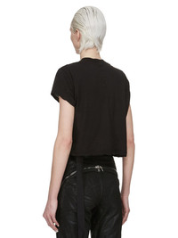 DRKSHDW SS25 HOLLYWOOD CROPPED SMALL LEVEL T IN BLACK COTTON GAUZE JERSEY THIS CROPPED SMALL LEVEL T IS ABOVE HIP LENGTH WITH A SEMI-FITTED CUT, SHORT SLEEVES AND A RIBBED CREW NECK. IT FEATURES SIGNATURE FRONT LEVEL SHOULDER SEAMS AND A CENTRE BACK SEAM THIS LIGHTWEIGHT AND AIRY COTTON GAUZE JERSEY IS SEMI TRANSPARENT AND HAVE A SOFT WASHED HANDFEEL. THIS JERSEY IS GARMENT DYED THIS FABRIC IS MADE USING GOTS CERTIFIED ORGANIC COTTON WHICH MEANS THE NATURAL FIBER IS GROWN WITHOUT HARMFUL CHEMICALS, LEAVING OUR SOIL, AIR AND WATER CLEANER FROM CONTAMINATES COLOR: BLACK MATERIAL: 100% COTTON MODEL IS 181CM TALL MODEL WEARS SIZE S