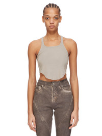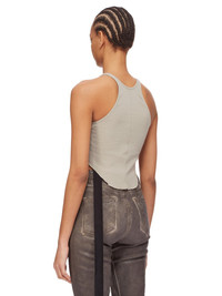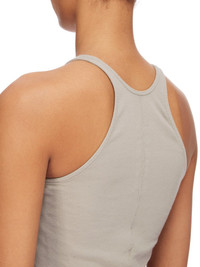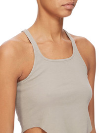 DRKSHDW FW24 PORTERVILLE BASIC TANK CROPPED IN PEARL MEDIUM WEIGHT COTTON JERSEY THIS BASIC TANK CROPPED IS WAIST LENGTH, WITH A ROUNDED RAW CUT HEM THAT DIPS IN FRONT AND BACK. IT HAS A ROUND NECKLINE AND THIN SHOULDER STRAPS THAT FLOW INTO A SLIGHT RACER BACK. IT FEATURES THE SIGNATURE SINGLE SEAM RUNNING DOWN THE CENTRE BACK SPINE THIS MEDIUMWEIGHT COTTON JERSEY HAS A COMPACT AND DRY HANDFEEL. THIS JERSEY IS GARMENT DYED THIS FABRIC IS MADE USING GOTS CERTIFIED ORGANIC COTTON WHICH MEANS THE NATURAL FIBER IS GROWN WITHOUT HARMFUL CHEMICALS, LEAVING OUR SOIL, AIR AND WATER CLEANER FROM CONTAMINATES - COLOR: PEARL - MATERIAL: 100% COTTON - MODEL IS 181CM TALL - MODEL WEARS SIZE S