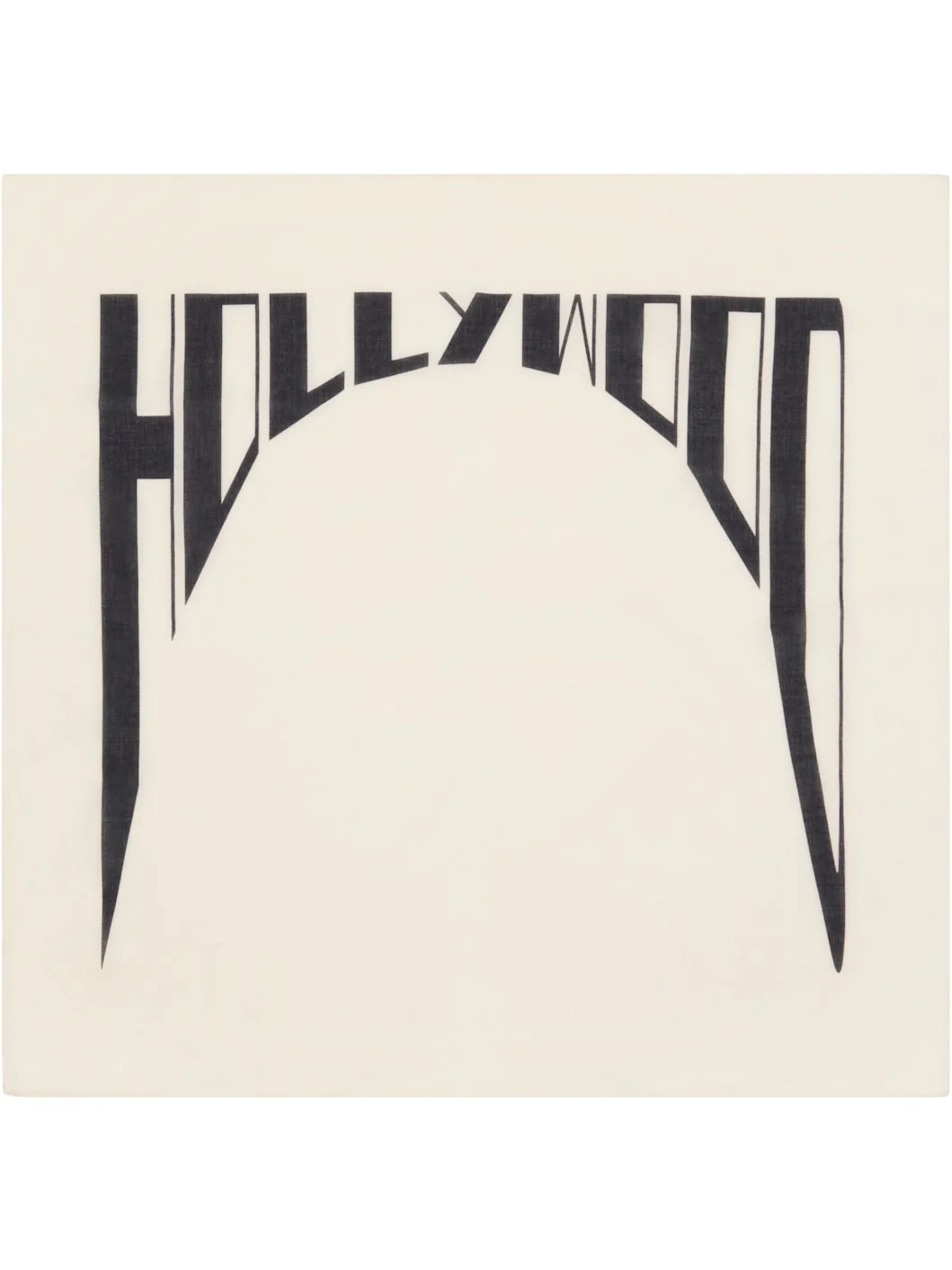 Square plain-woven cotton bandana. · Text printed at face · L20.5" x W20.5" Supplier color: Milk/Black 100% cotton. Made in Italy 251126F029003