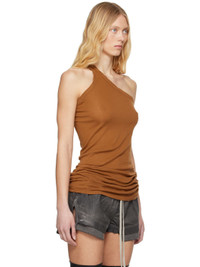 Semi-sheer GOTS-certified organic cotton gauze jersey tank top. · Garment-dyed · Single-shoulder construction · Topstitching at front hem · Rolled edge at hem · Central seam at back · Integrated logo-woven webbing strap at interior Supplier color: Orange 100% organic cotton. Made in Italy 251126F111007