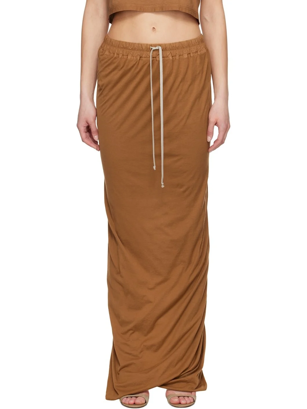 Lightweight GOTS-certified organic cotton jersey maxi skirt. · Garment-dyed · Draped construction · Drawstring at elasticized waistband · Central vent at back hem · Fully lined Supplier color: Orange Body: 100% organic cotton. Trim: 97% cotton, 3% elastane. Made in Italy 251126F093002