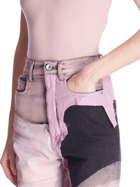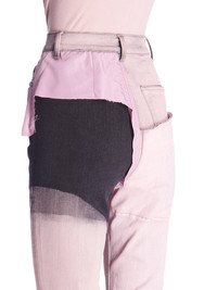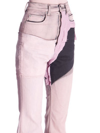 RICK OWENS SS23 EDFU BOLAN BOOTCUT IN FADED PINK DENIM COLLAGE THIS BOLAN BOOTCUT IS A HIGH WAISTED, SLIM FIT 5 POCKET JEAN WITH A FLOOR-LENGTH BOOT CUT. THEY CLOSE WITH A WAIST BUTTON AND CONCEALED BUTTON FLY. THEY HAVE A WAISTBAND WITH POCKET RIVETS AND REAR PATCH POCKETS WITH TOPSTITCHING. THEY FEATURE CREASED WHISKERING AT THE CROTCH THIS GARMENT IS MADE FROM FADED PINK DENIM COLLAGE - COLOR: FADED PINK AS SAMPLE - MATERIAL: 91% COTTON + 6% ELASTOMULTIESTER + 3% RUBBER - LEFT LEG DETAIL 100% POLYESTER - POCKETS LINING 100% COTTON - MODEL IS WEARING SIZE S - MODEL IS 181 CM TALL
