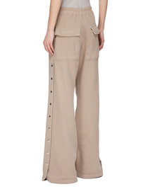 DRKSHDW FW25 CONCORDIANS PUSHER PANTS IN DIRTY PEARL SLUB FELPA THESE PUSHER PANTS ARE FLOOR LENGTH WITH A WIDE LEG AND A SLIGHTLY DROPPED CROTCH. THEY HAVE AN ELASTICIZED WAISTBAND WITH DRAWSTRING, SIDE FRONT JET POCKETS AND SQUARE BACK POCKETS WITH TOPSTITCHING. THEY FEATURE VISIBLE SNAP CLOSURES RUNNING DOWN THE OUTER LEG, ALLOWING THEM TO BE UNSNAPPED AND WORN OPEN. THIS HEAVYWEIGHT COTTON SWEATSHIRT JERSEY IS MADE WITH A SLUB YARN AND HAS A SOFT AND WASHED HANDFEEL. THIS JERSEY IS GARMENT DYED THIS FABRIC IS MADE USING GOTS CERTIFIED ORGANIC COTTON WHICH MEANS THE NATURAL FIBER IS GROWN WITHOUT HARMFUL CHEMICALS, LEAVING OUR SOIL, AIR AND WATER CLEANER FROM CONTAMINATES COLOR: DIRTY PEARL MATERIAL: 100% COTTON MODEL IS 181CM TALL MODEL WEARS SIZE S