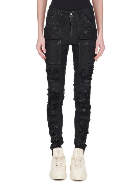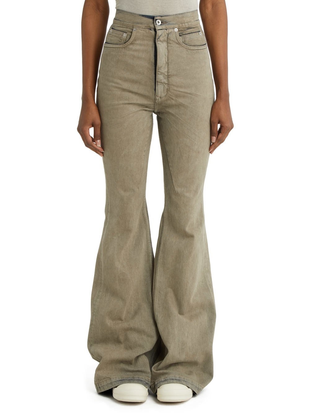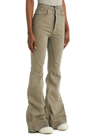 DRKSHDW FW22 STROBE BOLAN BOOTCUT IN 13OZ MINERAL PEARL DENIM THIS BOLAN BOOTCUT IS A HIGH WAISTED, SLIM FIT 5 POCKET JEAN WITH A FLOOR-LENGTH BOOT CUT. THEY CLOSE WITH A WAIST BUTTON AND CONCEALED BUTTON FLY. THEY HAVE A WAISTBAND WITH POCKET RIVETS AND REAR PATCH POCKETS WITH TOPSTITCHING. THEY FEATURE CREASED WHISKERING AT THE CROTCH THIS 13OZ JAPANESE SELVEDGE DENIM IS TREATED WITH A MINERAL STONE DYE - COLOR:MINERAL PEARL - MATERIAL: 100% COTTON - POCKETS LINING 52% POLYESTER + 48% COTTON - MODEL IS WEARING SIZE S - MODEL IS 181 CM TALL