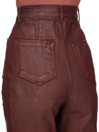 DRKSHDW FW25 CONCORDIANS BOLAN BOOTCUT IN SCAB WAX STRETCH DENIM THIS BOLAN BOOTCUT IS A HIGH WAISTED, SLIM FIT 6 POCKET JEAN WITH A FLOOR-LENGTH BOOT CUT. THEY HAVE A CONCEALED ZIPPER FLY WITH TOP BUTTON, A WAISTBAND WITH POCKET RIVETS AND REAR PATCH POCKETS WITH TOPSTITCHING. THEY FEATURE CREASED WHISKERING AT THE CROTCH. THIS LIGHTWEIGHT SCAB WAX DENIM IS MADE ON A 10OZ INDIGO AND NATURAL STRETCH DENIM. THE READY GARMENT IS OVERDYED SCAB AND TREATED WITH A WAX FINISH. A FINAL WASH GIVES THIS GARMENT ITS SOFTNESS THIS GARMENT IS TREATED IN AN ITALIAN WASH HOUSE BASED IN THE VENETO AREA OF ITALY, THAT PRODUCES IN SMALLER TREATMENT BATHS TO REDUCE WATER WASTE AND UTILIZE A WATER PURIFYING PROCESS THAT ENABLES THEM TO RECYCLE A PORTION OF THE WATER USED. ALL OF OUR DENIM WASHES ARE ZDHC CERTIFIED COLOR: SCAB WAX MATERIAL: 91% COTTON + 6% ELASTOMULTIESTER + 3% RUBBER FIBER MODEL IS 181CM TALL MODEL WEARS SIZE 26