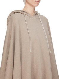 DRKSHDW FW25 CONCORDIANS PONCHO IN DIRTY PEARL SLUB FELPA THIS PONCHO IS ABOVE KNEE LENGTH AT FRONT AND HAS A HOOD WITH DRAWSTRING. IT IS A LARGE SQUARE CUT SHAPE WITH OPEN SIDES, FALLING OVER THE SHOULDERS AND REACHING TO BELOW THE ELBOW. ITS HEM DIPS SLIGHTLY AT THE SIDES. THIS HEAVYWEIGHT COTTON SWEATSHIRT JERSEY IS MADE WITH A SLUB YARN AND HAS A SOFT AND WASHED HANDFEEL. THIS JERSEY IS GARMENT DYED THIS FABRIC IS MADE USING GOTS CERTIFIED ORGANIC COTTON WHICH MEANS THE NATURAL FIBER IS GROWN WITHOUT HARMFUL CHEMICALS, LEAVING OUR SOIL, AIR AND WATER CLEANER FROM CONTAMINATES COLOR: DIRTY PEARL MATERIAL: 100% COTTON MODEL IS 181CM TALL ITEM IS AVAILABLE IN ONE SIZE