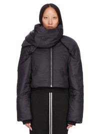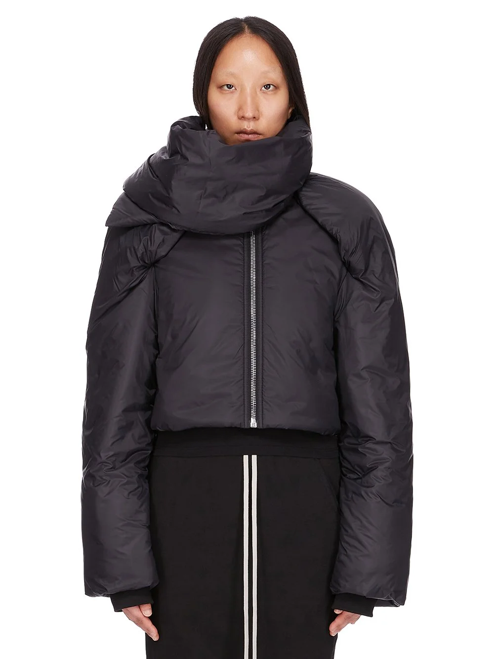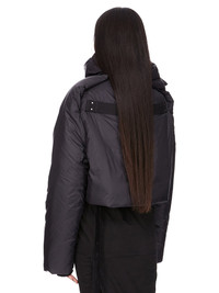 DRKSHDW FW25 CONCORDIANS COVERTIBLE JKT IN BLACK RECYCLED NYLON THIS CONVERTIBLE JKT CROPPED IS WAIST LENGTH WITH LONG SLEEVES. IT HAS A CENTER FRONT ZIPPER WITH TOP SNAP AND SHOULDER SNAPS, ENABLING THE SHOULDERS TO BE WORN FOLDED DOWN. IT FEATURES A REMOVABLE, HIGH FUNNEL COLLAR WITH SNAP FASTENINGS ON NECK. WHEN REMOVED IT REVEALS A RIBBED COLLAR AND VISIBLE SNAPS. IT HAS A COTTON WEBBING STRAP WITH RIVET DETAIL ON THE BACK YOKE. IT IS FULLY LINED AND HAS INTERNAL SNAP POCKETS. THIS AIRY AND LIGHTWEIGHT NYLON IS MADE USING GRS CERTIFIED RECYCLED NYLON WHICH ENSURES A REDUCTION IN WATER CONSUMPTION, EMISSIONS AND HAZARDOUS WASTE, LESSENING THE DEPENDENCE ON NON-RENEWABLE RESOURCES COLOR: BLACK MATERIAL: 100% NYLON MODEL IS 181CM TALL MODEL WEARS SIZE S