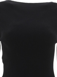 ribbed top Highlights - Black - Ribbed knit - Asymmetric body - Long sleeves - Round neck Made in Italy Composition Viscose 68%, Polyester 32%