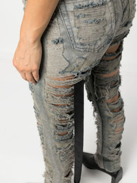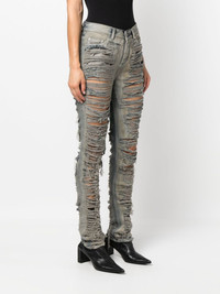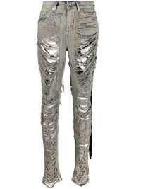 distressed-finish slim-cut jeans Highlights - Light grey - Denim - Distressed finish - Ripped detailing - Belt loops - Slim cut - Button fly fastening - Classic five pockets Made in Italy Composition Lining: Polyester 52%, Cotton 48% Outer: Cotton 100% SIZE & FIT Model measurements Height 5 ft 11 in(1.8 m) Bust/Chest 33.07 in(84 cm) Hips 37.4 in(95 cm) Waist 25.19 in(64 cm) FittingInformation Designed for a slim fit, these jeans offer a close fit at the waist and sit just away from the leg Sturdy and hard-wearing, this denim piece offers no stretch This piece fits true to size – take your usual size