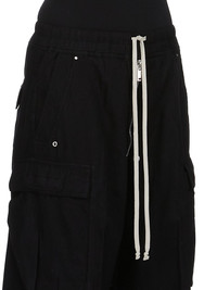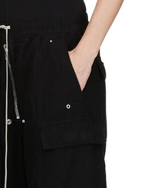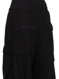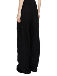 DRKSHDW FW25 CONCORDIANS DOUBLE CARGO JUMBO BELAS IN BLACK LIGHT FLANNEL THESE DOUBLE CARGO JUMBO BELA PANTS ARE FULL-LENGTH WITH A LOW CROTCH AND WIDE LEG. THEY FEATURE AN ELASTICIZED WAISTBAND WITH DRAWSTRING AND A BELA EXPOSED CENTER ZIPPER WITH TWO SNAP DETAIL, AND SIDE WELT POCKETS WITH RIVETS. THEY FEATURE TWO BEVELED CARGO POCKETS ON THE THIGH, WITH TWO SQUARE CARGO POCKETS BELOW AND TWO SQUARE BACK POCKETS. THEY ALL HAVE FLAPS AND TOPSTITCHING. THIS LIGHTWEIGHT COTTON FLANNEL FABRIC IS GARMENT DYED WITH A SOFT AND BRUSHED HANDFEEL THIS FABRIC IS MADE USING GOTS CERTIFIED ORGANIC COTTON WHICH MEANS THE NATURAL FIBER IS GROWN WITHOUT HARMFUL CHEMICALS, LEAVING OUR SOIL, AIR AND WATER CLEANER FROM CONTAMINATES COLOR: BLACK MATERIAL: 100% COTTON MODEL IS 181CM TALL MODEL WEARS SIZE S