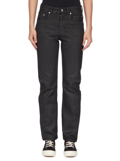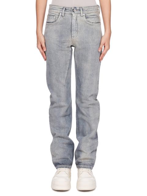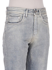 DRKSHDW FW25 CONCORDIANS FOG CUT IN 13OZ MINERAL PEARL DENIM THESE FOG CUT ARE AN ABOVE ANKLE LENGTH, 6-POCKET JEAN WITH A LOW RISE AND REGULAR FIT. THEY HAVE A CONCEALED SILVER ZIPPER FLY WITH TOP BUTTON. THEY FEATURE CROTCH AND KNEE WHISKERING. THIS MEDIUMWEIGHT MINERAL PEARL DENIM IS MADE ON A 13OZ INDIGO AND NATURAL DENIM. THE READY GARMENT IS STONE WASHED TOGETHER WITH A MINERAL DYE THIS GARMENT IS TREATED IN AN ITALIAN WASH HOUSE BASED IN THE VENETO AREA OF ITALY, THAT PRODUCES IN SMALLER TREATMENT BATHS TO REDUCE WATER WASTE AND UTILIZE A WATER PURIFYING PROCESS THAT ENABLES THEM TO RECYCLE A PORTION OF THE WATER USED. ALL OF OUR DENIM WASHES ARE ZDHC CERTIFIED COLOR: MINERAL PEARL MATERIAL: 100% COTTON POCKETS LINING 52% POLYESTER + 48% COTTON MODEL IS 181CM TALL MODEL WEARS SIZE 26