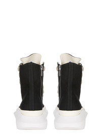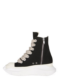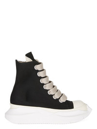 DRKSHDW SS25 HOLLYWOOD JUMBO LACES ABSTRACT SNEAK IN BLACK/MILK/MILK COTTON CANVAS THESE JUMBO LACES ABSTRACT SNEAKS ARE ABOVE ANKLE HEIGHT AND FEATURE SEVEN LARGE EYELETS AND JUMBO LACES, TOE CAPS AND A VOLUMINOUS RUBBER ABSTRACT SOLE THIS MEDIUMWEIGHT COTTON CANVAS IS COMPACT WITH A SOFT HANDFEEL. THIS GARMENT HAS BEEN GARMENT DYED. THIS FABRIC IS MADE USING GOTS CERTIFIED ORGANIC COTTON WHICH MEANS THE NATURAL FIBER IS GROWN WITHOUT HARMFUL CHEMICALS, LEAVING OUR SOIL, AIR AND WATER CLEANER FROM CONTAMINATES COLOR: BLACK/MILK/MILK MATERIAL: UPPER 100% COTTON TOE 70% POLYURETHANE + 30% VISCOSE LINING 100% COTTON MID SOLE 100% THERMOPLASTIC RUBBER SOLE 100% E.V.A PLATFORM AT HEEL 7CM / AT TOE 5CM