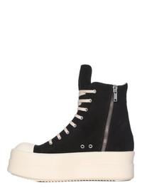 DRKSHDW FW25 CONCORDIANS DOUBLE BUMPER SNEAKS IN BLACK/MILK/MILK BRUSHED COTTON THESE DOUBLE BUMPER SNEAKS ARE ABOVE ANKLE HEIGHT AND FEATURE EIGHT EYELETS, LACES, A ZIPPER ON THE INSIDE ANKLE FOR EASY FASTENING, TOE CAPS AND DOUBLE HEIGHT BUMPER SHARK TOOTH SOLES. THIS MEDIUMWEIGHT BRUSHED COTTON FABRIC IS GARMENT DYED WITH A SOFT AND BRUSHED HANDFEEL THIS FABRIC IS MADE USING GOTS CERTIFIED ORGANIC COTTON WHICH MEANS THE NATURAL FIBER IS GROWN WITHOUT HARMFUL CHEMICALS, LEAVING OUR SOIL, AIR AND WATER CLEANER FROM CONTAMINATES COLOR: BLACK/MILK/MILK MATERIAL: UPPER 100% COTTON TOE 70% POLYURETHANE + 30% VISCOSE LINING 100% COTTON SOLE HEIGHT 6.5CM