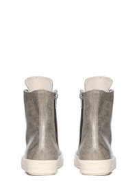 DRKSHDW FW25 CONCORDIANS SNEAKS IN PALLADIUM/MILK/MILK 13OZ PALLADIUM FOIL DENIM THESE SNEAKS ARE ABOVE ANKLE HEIGHT AND FEATURE EIGHT EYELETS, LACES, A ZIPPER ON THE INSIDE ANKLE FOR EASY FASTENING, TOE CAPS AND SHARK TOOTH SOLES. THIS MEDIUMWEIGHT 13OZ DENIM IS OVERDYED AND TREATED WITH A PALLADIUM FOIL OVERLAY AND WASHED TO ACHIEVE THE IRREGULAR LOOK SINCE THE FOIL IS PRESSED ON TOP OF THE FINAL GARMENTS, EACH PIECE WILL HAVE ITS OWN UNIQUE LOOK AND CREASES SINCE THE FOIL WILL ATTACH TO DIFFERENT PLACES DEPENDING ON THE GARMENT THIS FABRIC IS MADE USING GOTS CERTIFIED ORGANIC COTTON WHICH MEANS THE NATURAL FIBER IS GROWN WITHOUT HARMFUL CHEMICALS, LEAVING OUR SOIL, AIR AND WATER CLEANER FROM CONTAMINATES THIS GARMENT IS TREATED IN AN ITALIAN WASH HOUSE BASED IN THE VENETO AREA OF ITALY, THAT PRODUCES IN SMALLER TREATMENT BATHS TO REDUCE WATER WASTE AND UTILIZE A WATER PURIFYING PROCESS THAT ENABLES THEM TO RECYCLE A PORTION OF THE WATER USED. ALL OF OUR DENIM WASHES ARE ZDHC CERTIFIED COLOR: PALLADIUM/MILK/MILK MATERIAL: UPPER 100% COTTON TOE 70% POLYURETHANE + 30% VISCOSE LINING 100% COTTON SOLE HEIGHT 3.5CM