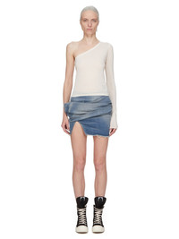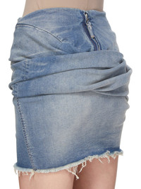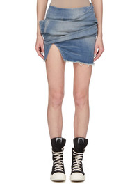 DRKSHDW SS25 HOLLYWOOD DRAPED MINI IN WASHED INDIGO WASHED INDIGO STRETCH DENIM THIS LOW TWIST MINI SKIRT IS MID-THIGH LENGTH, WITH A TIGHT FIT. IT HAS A HIGH WAIST WITH A BACK ZIPPER. IT FEATURES AN OVER LAYER WHICH IS DESIGNED TO BE WORN SWEEPING FROM THE BACK, FOLDING ACROSS THE FRONT, AND ENDING IN A POINT ON THE RIGHT THIGH THIS LIGHTWEIGHT WASHED INDIGO DENIM IS MADE ON A 10OZ INDIGO AND NATURAL STRETCH DENIM. THE READY GARMENT IS WASHED WITH MINERALS TO ACHIEVE THE FINAL LOOK. THIS FABRIC IS MADE USING OCS CERTIFIED ORGANIC COTTON WHICH MEANS THE NATURAL FIBER IS GROWN WITHOUT HARMFUL CHEMICALS, LEAVING OUR SOIL, AIR AND WATER CLEANER FROM CONTAMINATES THIS GARMENT IS TREATED IN AN ITALIAN WASH HOUSE BASED IN THE VENETO AREA OF ITALY, THAT PRODUCES IN SMALLER TREATMENT BATHS TO REDUCE WATER WASTE AND UTILIZE A WATER PURIFYING PROCESS THAT ENABLES THEM TO RECYCLE A PORTION OF THE WATER USED. ALL OF OUR DENIM WASHES ARE ZDHC CERTIFIED COLOR: WASHED INDIGO MATERIAL: 91% COTTON + 6% ELASTOMULTIESTER + 3% RUBBER MODEL IS 181CM TALL MODEL WEARS SIZE S