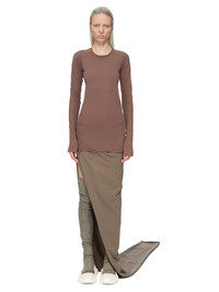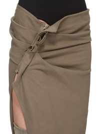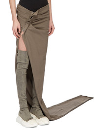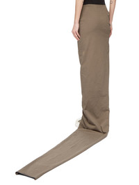 DRKSHDW FW23 LUXOR EDFU SKIRT LONG IN DUST COMPACT HEAVY COTTON JERSEY THIS EDFU SKIRT LONG TRAILS FLOOR-LENGTH. IT IS A TRIANGULAR WRAP AROUND SHAPE, SLOPING FROM GATHERED DRAPING THAT CREATES A SHORT WINGED RUFFLE ON THE RIGHT HIP. FROM THERE ITS HIGH SPLIT SLOPES INTO A SLIGHTLY TAPERED HEM. IT OPENS WITH A SIDE ZIPPER BEHIND THE RUFFLE. THIS HEAVYWEIGHT AND COMPACT COTTON JERSEY HAS A BRUSHED AND SOFT HANDFEEL. THIS JERSEY IS GARMENT DYED. THIS FABRIC IS MADE USING GOTS CERTIFIED ORGANIC COTTON WHICH MEANS THE NATURAL FIBER IS GROWN WITHOUT HARMFUL CHEMICALS, LEAVING OUR SOIL, AIR AND WATER CLEANER FROM CONTAMINATES - COLOR: DUST - MATERIAL: 100% COTTON - MODEL IS WEARING SIZE S - MODEL IS 181 CM TALL