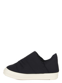 DRKSHDW FW24 PORTERVILLE PUFFER SLIP ON IN BLACK/MILK COTTON NYLON FAILLE THESE PUFFER SLIP ON ARE UNDER-ANKLE HEIGHT. THEY HAVE A SOFT PADDED PULL ON UPPER WITH QUILTING LINES, AND SHARK TOOTH SOLES THIS COTTON NYLON BLEND HAS A MICRO FAILLE STRUCTURE AND A SOFT HANDFEEL. THIS PRODUCT WAS MADE USING CERTIFIED RECYCLED POLYAMIDE BECAUSE IS ENSURES A REDUCTION IN WATER CONSUMPTION, EMISSIONS AND HAZARDOUS WASTE, LESSENING THE DEPENDENCE ON NON-RENEWABLE RESOURCES THIS FABRIC WAS ALSO MADE USING GOTS CERTIFIED ORGANIC COTTON WHICH MEANS THE NATURAL FIBER IS GROWN WITHOUT HARMFUL CHEMICALS, LEAVING OUR SOIL, AIR AND WATER CLEANER FROM CONTAMINATES - COLOR: BLACK/MILK - MATERIAL: UPPER 53% NYLON + 47% COTTON - LINING 100% NYLON - PADDING 100% POLYESTER - INSOLE 60% POLYURETHANE + 40% POLYESTER - SOLE 100% THERMOPLASTIC RUBBER