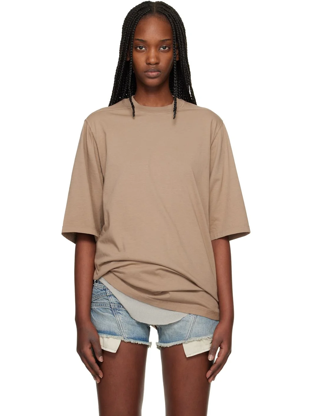 Garment-dyed organic cotton jersey T-shirt. · GOTS-certified organic cotton · Oversized · Rib-knit crewneck · Offset shoulder seams · Central seam at back · Logo-woven strap at interior Supplier color: Flesh 100% organic cotton. Made in Italy 261126F110001