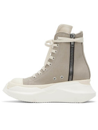 High-top denim slip-on sneakers. · Faux-leather cap toe · Wraparound lace-up closure · Zip pocket at outer side · Zip closure and metal eyelets at inner side · Twill lining · Treaded rubber platform sole · Platform: H2.25" Supplier color: Dark pearl/Milk/Milk Upper: textile. Sole: rubber. Made in Italy 252126F127004