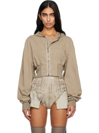 Organic cotton-blend fleece hoodie. · GOTS-certified cotton · Paneled construction · Zip closure extends to hood · Rib-knit hem and cuffs · Cropped hem Supplier color: Dirty pearl 84% cotton, 16% polyester. Made in Italy 252126F097034