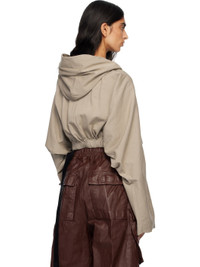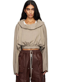 Heavyweight GOTS-certified organic cotton jersey hoodie. · Garment-dyed · Funnel neck · Elasticized cropped hem · Raw edge at cuffs · Integrated logo-woven strap at interior Supplier color: Dirty pearl 100% organic cotton. Made in Italy 252126F097004