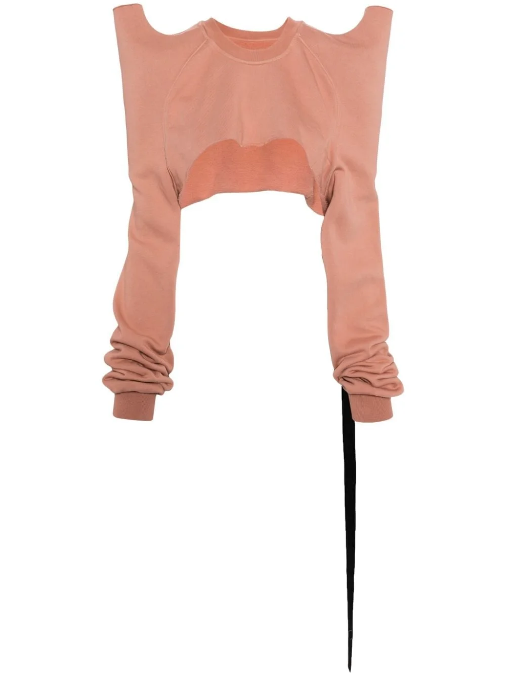 Tecsweat cropped sweatshirt Highlights - Salmon pink - Organic cotton - Exaggerated shoulder - Rolled trim - Cropped - Ribbed cuffs - Crew neck - Long raglan sleeves Made in Italy Composition Organic Cotton 100%