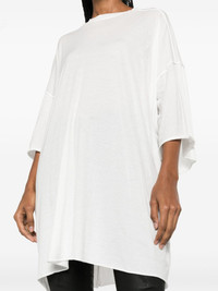 Tommy T cotton T-shirt Highlights - White - Organic cotton - Jersey texture - Crew neck - Drop shoulder - Short sleeves - Raw-cut hem - This item is made from at least 50% organic materials. - Learn more about what makes a product conscious on our conscious criteria page Composition Organic Cotton 100% SIZE & FIT Model measurements Height 5 ft 11 in(1.8 m) Bust/Chest 31.5 in(80 cm) Hips 35 in(89 cm) Waist 23.6 in(60 cm) Measurement BUST 59.1 in(150 cm) Length 35.4 in(90 cm) Shoulder 31.5 in(80 cm) SLEEVE LENGTH 9.8 in(25 cm) WAIST 59.1 in(150 cm) FittingInformation Designed for an oversized fit, offering additional room throughout Made from a midweight non-stretch fabric, this piece offers minimal elasticity when worn This piece is only produced in one size