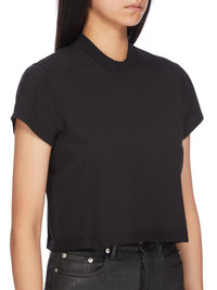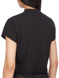 DRKSHDW FW25 CONCORDIANS CROPPED SMALL LEVEL T IN BLACK MEDIUM WEIGHT COTTON JERSEY THIS CROPPED SMALL LEVEL T IS ABOVE HIP LENGTH WITH A SEMI-FITTED CUT, SHORT SLEEVES AND A RIBBED CREW NECK. IT FEATURES SIGNATURE FRONT LEVEL SHOULDER SEAMS AND A CENTRE BACK SEAM. THIS MEDIUMWEIGHT COTTON JERSEY HAS A COMPACT AND DRY HANDFEEL. THIS JERSEY IS GARMENT DYED THIS FABRIC IS MADE USING GOTS CERTIFIED ORGANIC COTTON WHICH MEANS THE NATURAL FIBER IS GROWN WITHOUT HARMFUL CHEMICALS, LEAVING OUR SOIL, AIR AND WATER CLEANER FROM CONTAMINATES COLOR: BLACK MATERIAL: 100% COTTON MODEL IS 181CM TALL MODEL WEARS SIZE S