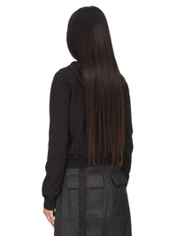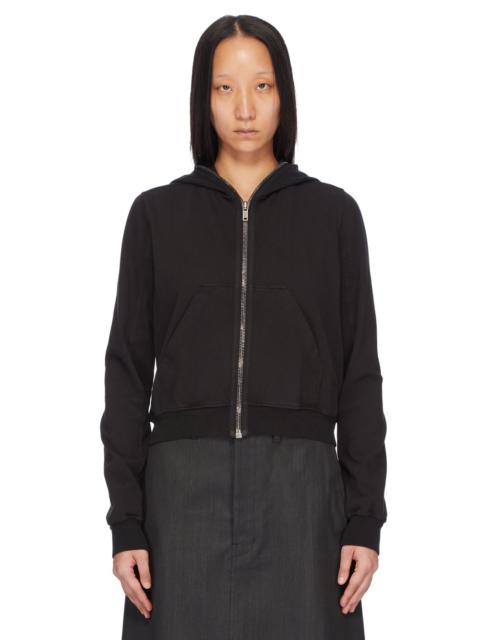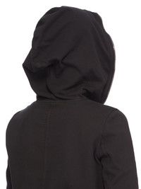 DRKSHDW FW25 CONCORDIANS SMALL GIMP HOODIE IN BLACK COMPACT HEAVY JERSEY THIS SMALL GIMP HOODIE IS ABOVE HIP LENGTH WITH LONG SLEEVES. IT HAS A FRONT ZIPPER CLOSURE WITH EXPOSED ZIPPER TAPE THAT RUNS FROM THE HEM ALL THE WAY UP THROUGH THE HOOD, ALLOWING IT TO BE ZIPPERED COMPLETELY CLOSED OVER THE FACE. IT HAS TWO FRONT PATCH POCKETS, RIBBED CUFFS AND WAISTBAND A SINGLE SEAM RUNNING DOWN THE CENTRE BACK SPINE. THIS HEAVYWEIGHT AND COMPACT COTTON JERSEY HAS A BRUSHED AND SOFT HANDFEEL. THIS JERSEY IS GARMENT DYED THIS FABRIC IS MADE USING GOTS CERTIFIED ORGANIC COTTON WHICH MEANS THE NATURAL FIBER IS GROWN WITHOUT HARMFUL CHEMICALS, LEAVING OUR SOIL, AIR AND WATER CLEANER FROM CONTAMINATES COLOR: BLACK MATERIAL: 100% COTTON MODEL IS 181CM TALL MODEL WEARS SIZE S